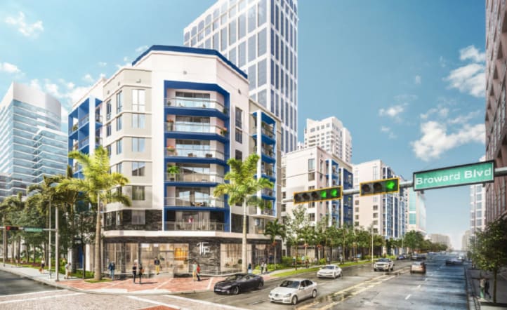 A new residential project is underway at the southwest corner of Third Ave & Broward Blvd as part of One Financial Plaza. The 242-unit building is being developed by Fairfield Residential.